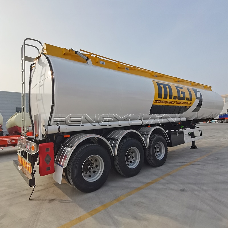 Fengyuan Petrol tanker trailer material: carbon steel, stainless steel, aluminum alloy, pure aluminum tank, rubber-lined, rotomolded, plastic tank, glass steel tank can also be used as required