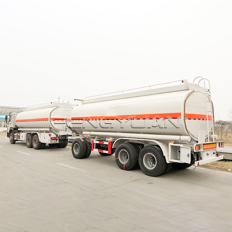 Fengyuan Petrol tanker trailer material: carbon steel, stainless steel, aluminum alloy, pure aluminum tank, rubber-lined, rotomolded, plastic tank, glass steel tank can also be used as required