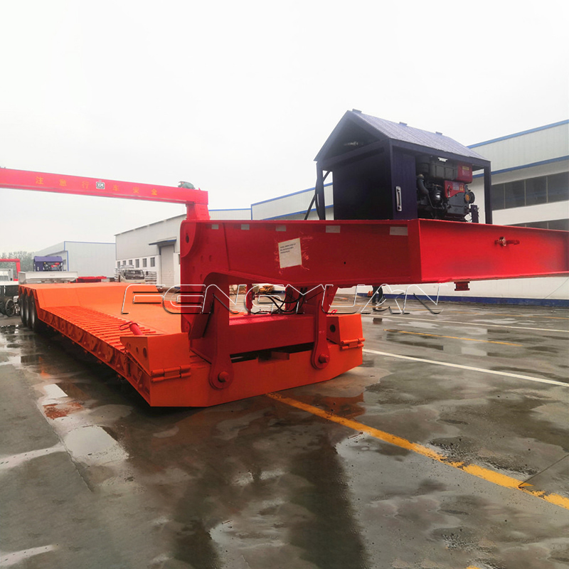 Our Factory Lowbed Semi trailers have different capacities ,such as 20tons,30tons,50tons,70tons ,80tons and 100tons,120tons.Each type of Lowbed Semi trailers for sale uses different number of axles from 2,3,4 axles to 7,8 axles ,FengYuan Produces the high quality ,strong and most durable lowbed semi trailer which can carry excavators ,bulkdozer,and other construction equipment .When loading a mechanical device on a Lowbed Semi trailers ,it usually loads mechanical equipment from the rear end of the semi-trailer,that is ,to move the mechanical equipment from the rear ladder ,then fix the mechanical equipment on the semi-trailer.we can provide different configurations of our Lowbed Semi trailers to meet your transportation requirement .